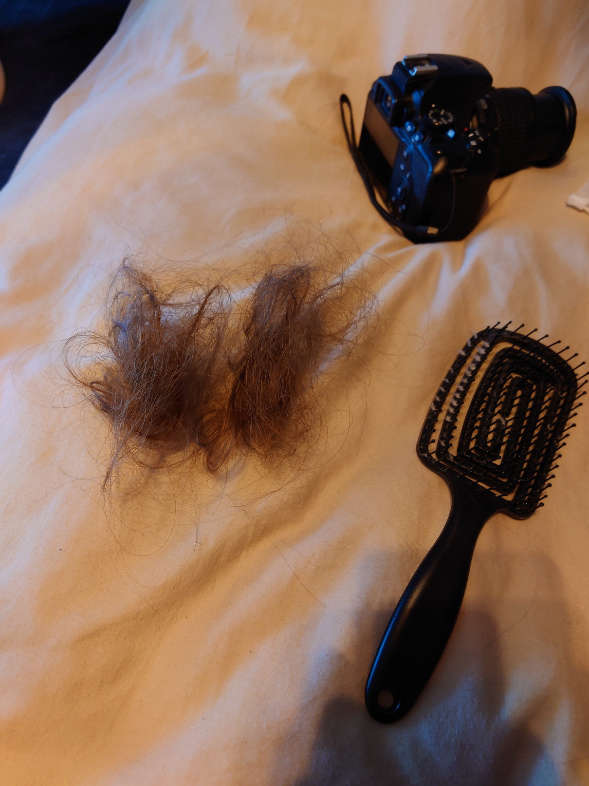 Wenn Du mit ihr „aktiv“ sein möchtest, binde ihr einen Zopf. Das schützt die Haare und sie verknoten nicht. Auch wenn man noch so vorsichtig ist, es gehen immer Haare verloren. Das Haar ist extrem Dicht, also fällt das jetzt (noch) nicht auf.