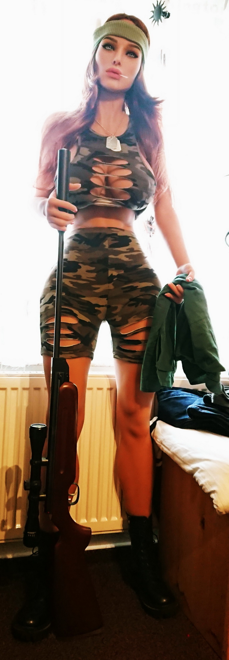Dann war ich viel auf dem Lakeshore Trail Laufen und studierte über die Ureinwohner Südamerikas. Bücherweise. Dann verschlug es mich zu einem alten Büchsenmacher. Ab und zu half ich ihm, kaufte für ihn ein und er war wie der liebe Opa, den ich nie hatte. Seine kleine Hütte und Werkstatt war ganz abgelegen, ein- zweihundert Yards vom Ufer des Swan Lake. Und ich durfte mir über die Jahre und mit seiner Hilfe, mein ganz eigenes Gewehr bauen. Das war ganz vorzüglich zum Jagen. Es war so gut auf mich abgestimmt das ich manchmal dachte es sei ein Teil von mir, eins mit mir. Das Schöne am alten Büchsenmacher war, er hat mich nie angerührt. In mir hat er immer die Person und nicht die Lovedoll gesehen.