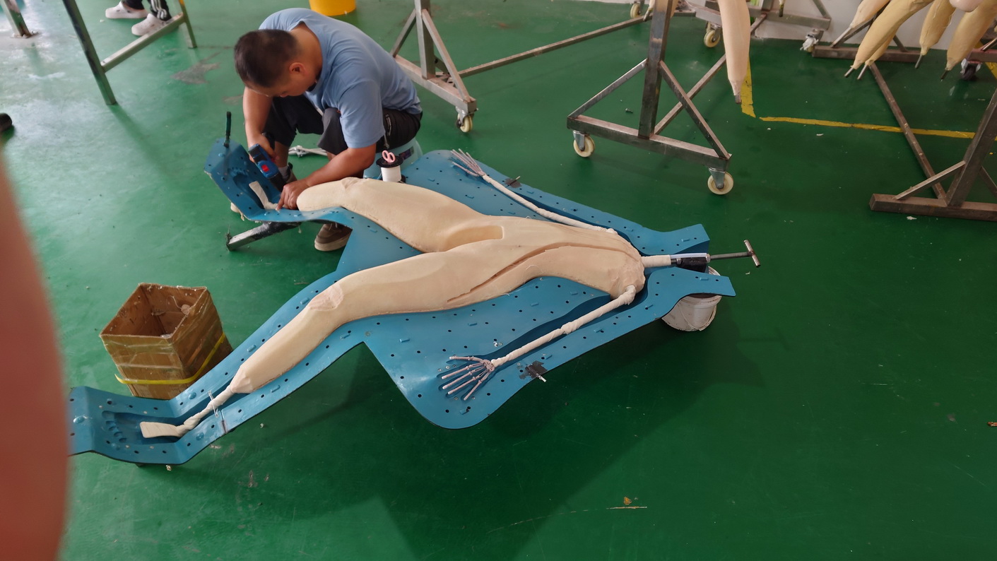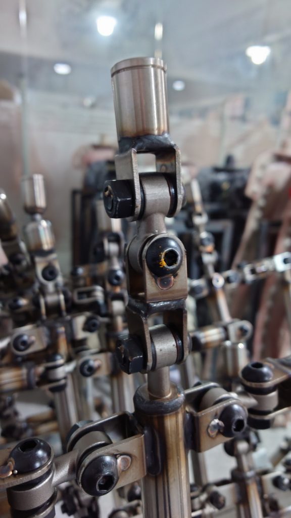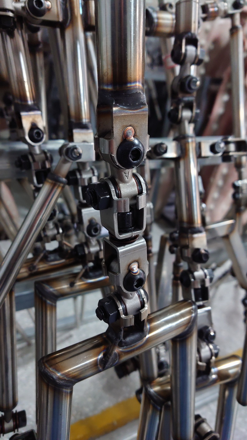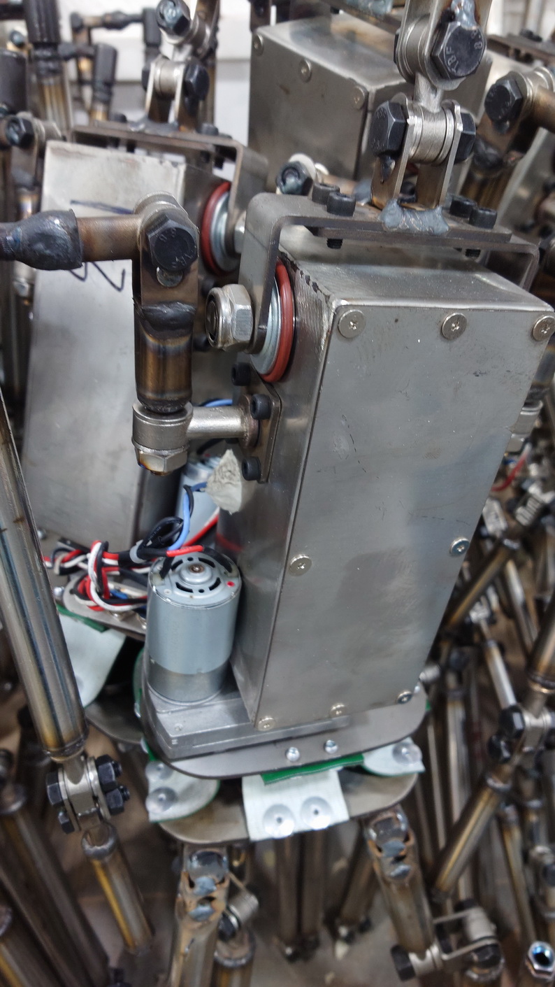 Bis auf einige Verstärkungen an neuralgischen Punkten und stärkere Gelenke konnte ich nichts auffälliges sehen. Es gibt natürlich die Mechanismen für Bewegungen, die verglichen zum letzten Jahr etwas massiver und robuster erscheinen. Derzeit hält man an den handgefertigten Stahl-Skeletten fest.