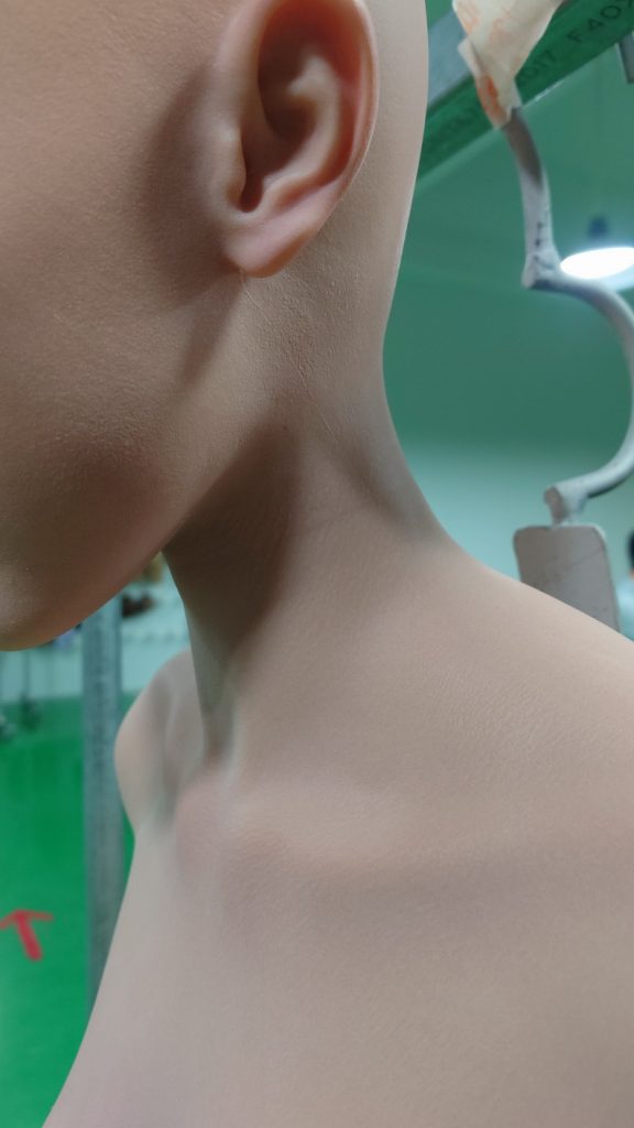 Das bedeutet, die gesamte Puppe ist aus einem Guss. Der Kopf ist wie bei uns Menschen fest mit dem Körper verbunden. Gut – man kann den Kopf nicht abnehmen. Keine Änderung des Typs, größere Verpackung, Mehr aufwand für den Schutz während des Transportes, umständlicher anzukleiden. Aber dafür eine Lebensechtheit die ihres gleichen sucht.